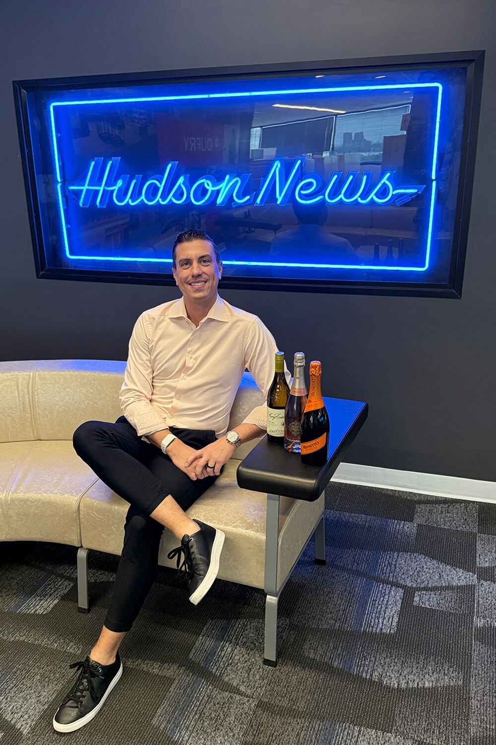 The Best of Both Worlds: Tyler Pitman brings a taste of luxury to the Hudson News lounge, bridging the gap between world-class wines and premium airport dining.
